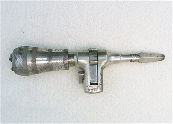In December 1879, Backus lost the right to manufacture the chuck he had patented in 1872. He responded to the situation by selling braces equipped with his Draper-type chuck while he worked on developing and patenting a new design. A new chuck, based on two different patents, was brought to the market in late 1880. The chuck featured a chuck with two opposing grooves cut into the exterior of its threaded socket. Within each groove, a strap-type spring engaged a notch in the rear of the jaw. As the shell was loosened on the threaded socket, pressure from the springs forced the jaws apart. The self-opening chuck, stamped with October 19th and November 16th patent dates, became the operation's new standard (Patent Nos. 233,464 and 234,517).