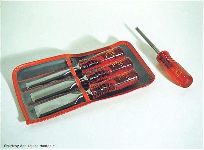 A small subset of Huxtable's tool work is shown here. Many of the images are courtesy of Ada Louise Huxtable or the L. Garth Huxtable Collection at the American Heritage Center at the University of Wyoming, Laramie (now at the Getty Research Institute). Since the images on this page are thumbnails, credit lines appear on the full-size illustrations. Not all of these tools were produced, but they give a good idea of the range of Huxtable's creative abilities.