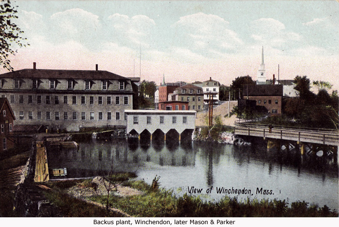 Quimby Backus became increasingly interested in the manufacture of heating devices and in 1888 established a business in Philadelphia to produce them. The new business was demanding, and he arranged for Orlando Mason and Homer Parker to manufacture his bit braces for him. Headquartered in Winchendon, Mason and Parker continued making the braces in the building that Backus had used. In 1891, Backus joined with A. D. Hermance, E. A. Rowley, and J. J. Crocker to form the Backus Manufacturing Company in Williamsport, Pennsylvania. The new company manufactured steam radiators, mantels, tiles, fireplaces, and gas logs. By 1892, sixty workers were employed at the site. The financing and sales end of the Backus bit brace operation was folded into the business although the manufacture of the boring tools remained with Mason & Parker in Winchendon. By the mid-1890s, Backus braces were out of production.(19)