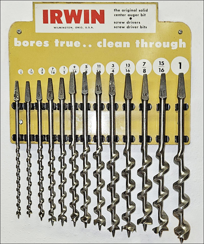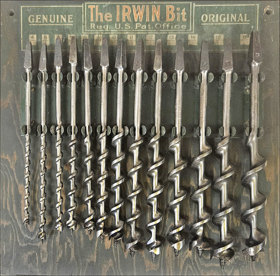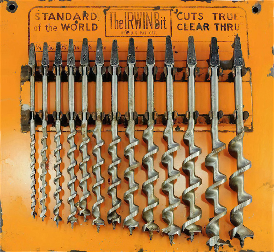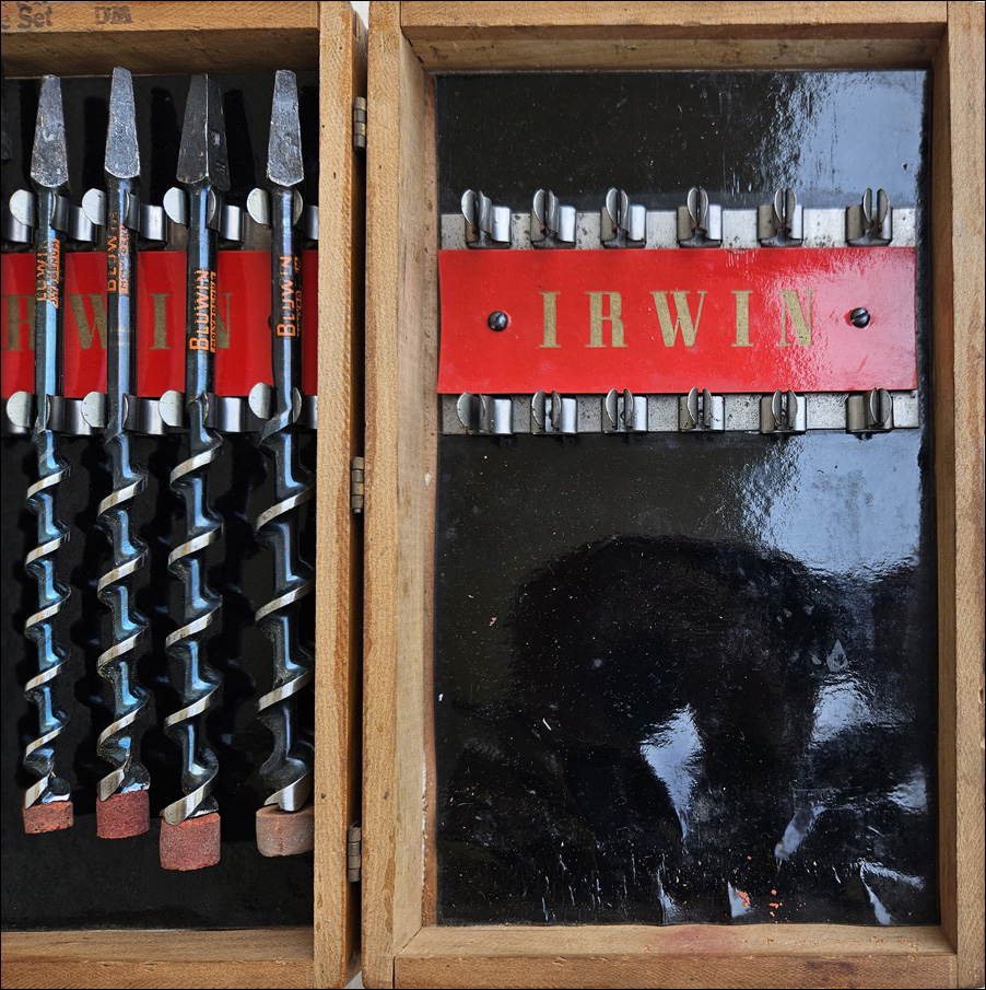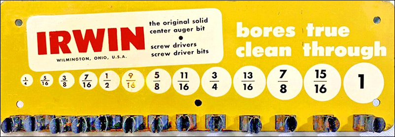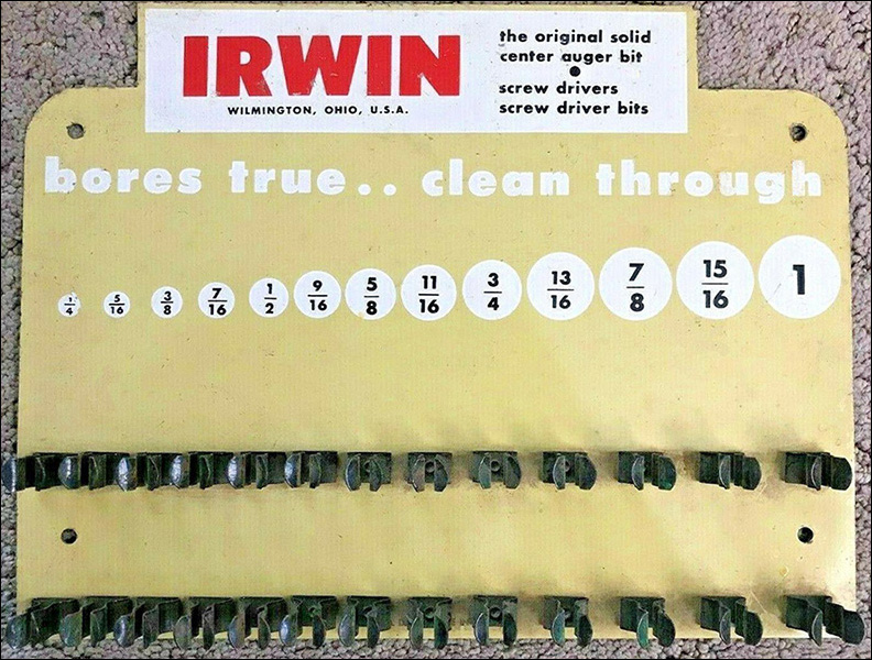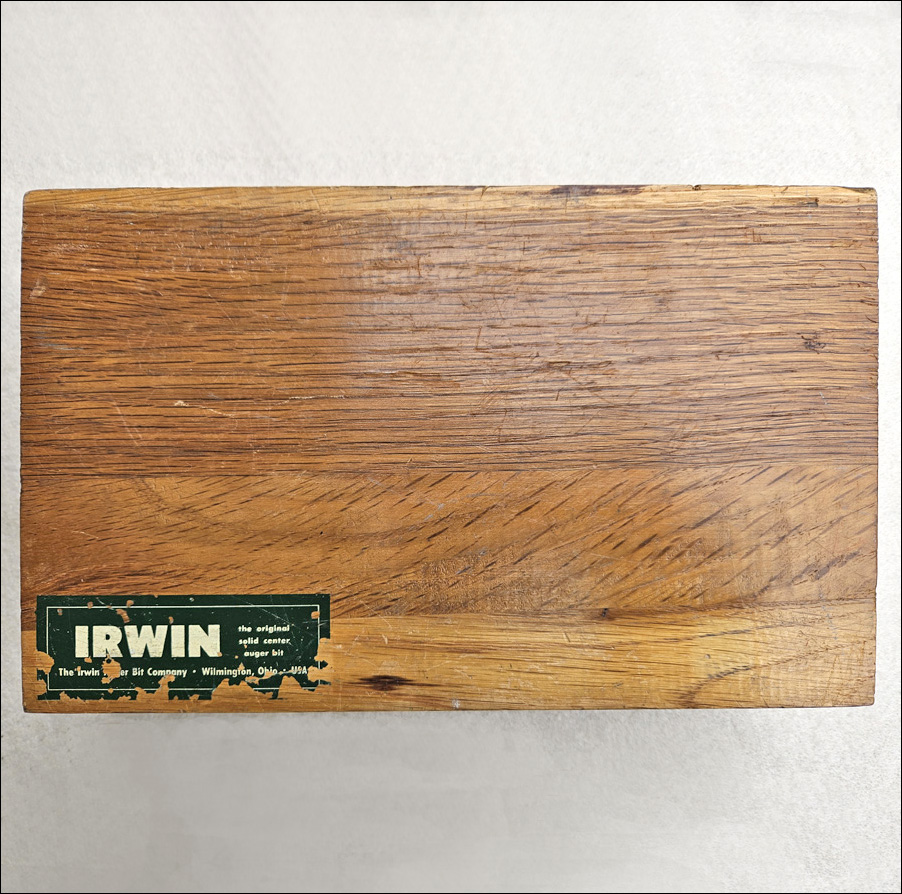 - small green label on lid lists manufacturer as: The Irwin Auger Bit Company