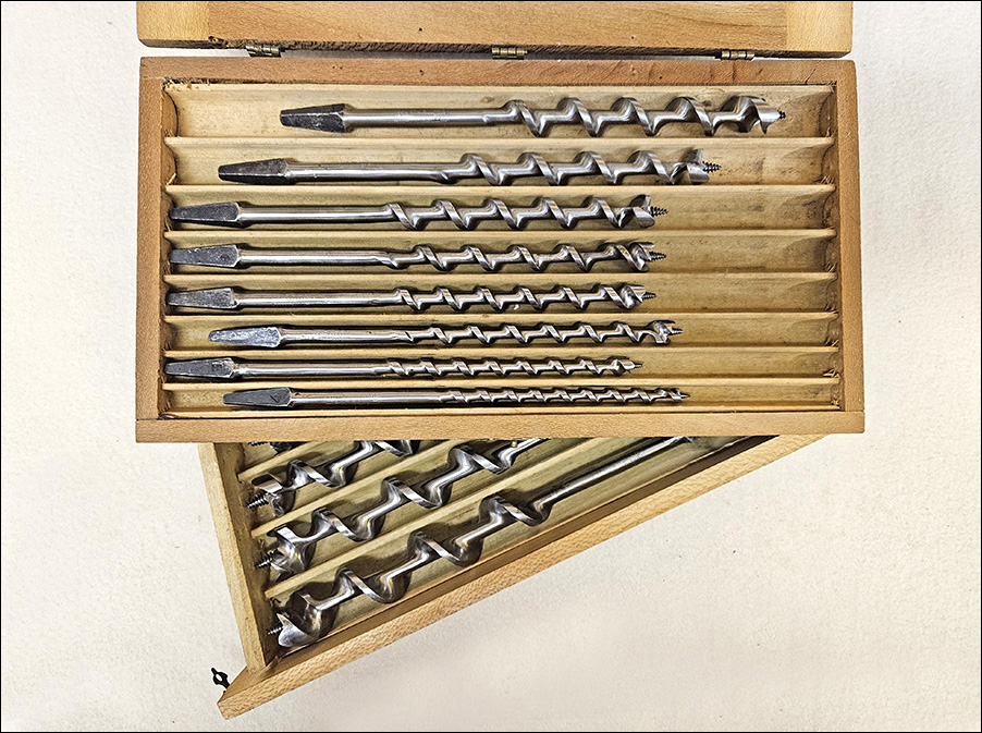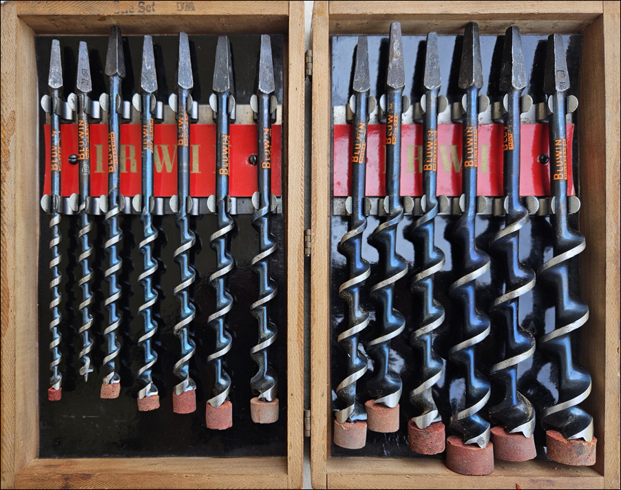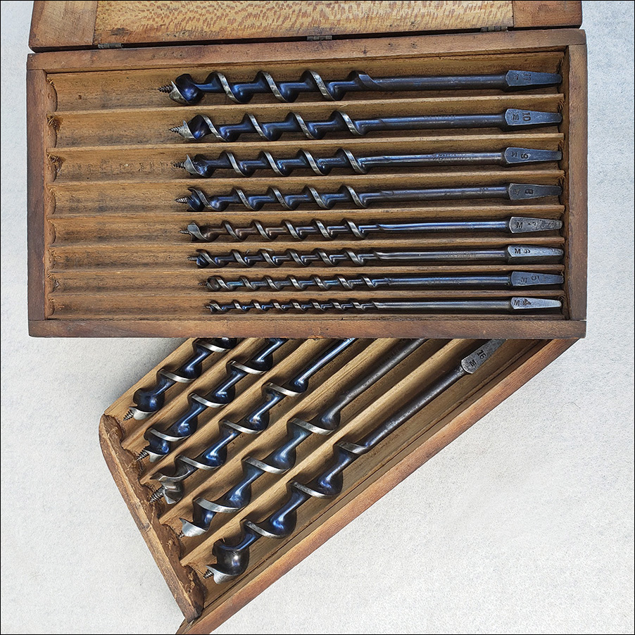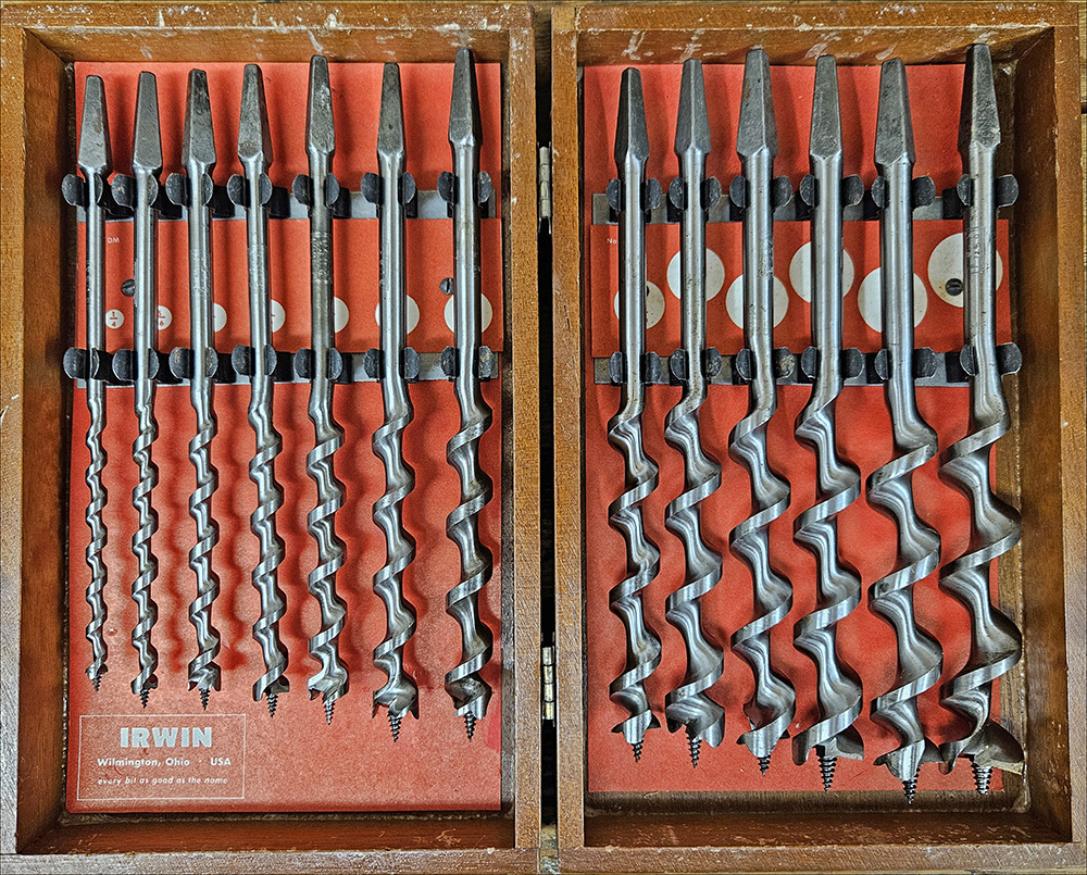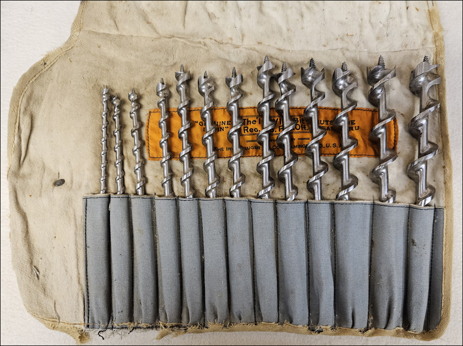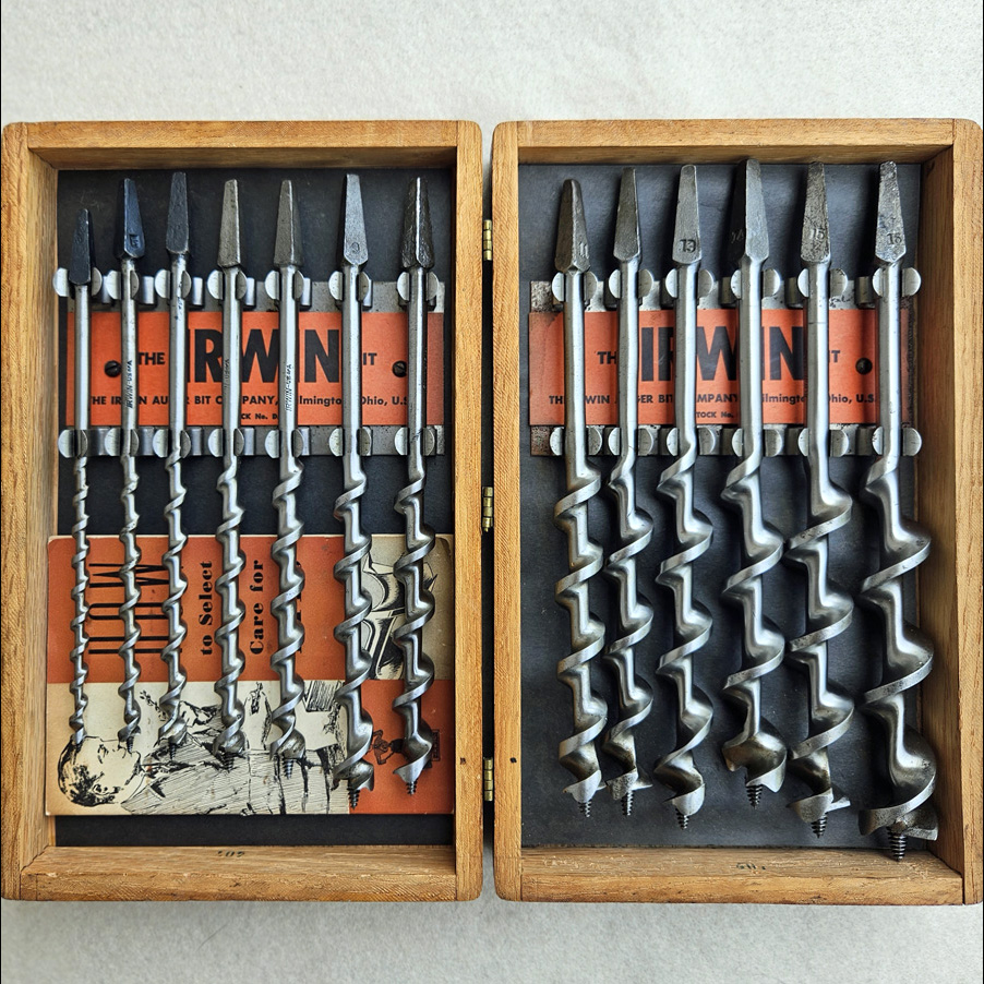 - two sizes available: one with a standard set of 13 bits, and a Farmer's Set with 9 augers and one screwdriver bit.