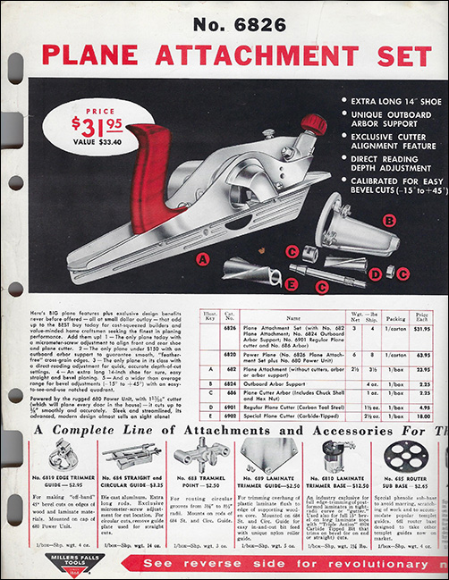 The 1954 catalog was titled: Millers Falls Power Tools: Finest Electric Tools Made. This easy-to-miss variant reflects changes to the product line since the 1955 edition.