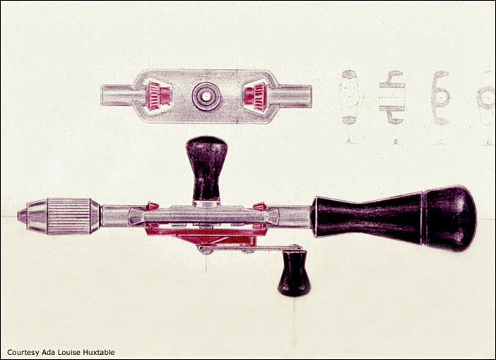 A small subset of Huxtable's tool work is shown here. Many of the images are courtesy of Ada Louise Huxtable or the L. Garth Huxtable Collection at the American Heritage Center at the University of Wyoming, Laramie (now at the Getty Research Institute). Since the images on this page are thumbnails, credit lines appear on the full-size illustrations. Not all of these tools were produced, but they give a good idea of the range of Huxtable's creative abilities.